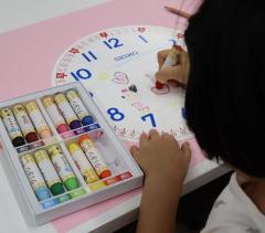 ウオッチの組立体験を通じて時計の歴史や仕組みを学びながら、自分のウオッチを親子で組み立てます。クロックは、大きな文字板に自由に絵を描いて、針を取り付けます。ケースにいれたら世界にたったひとつのオリジナルクロックができあがります。